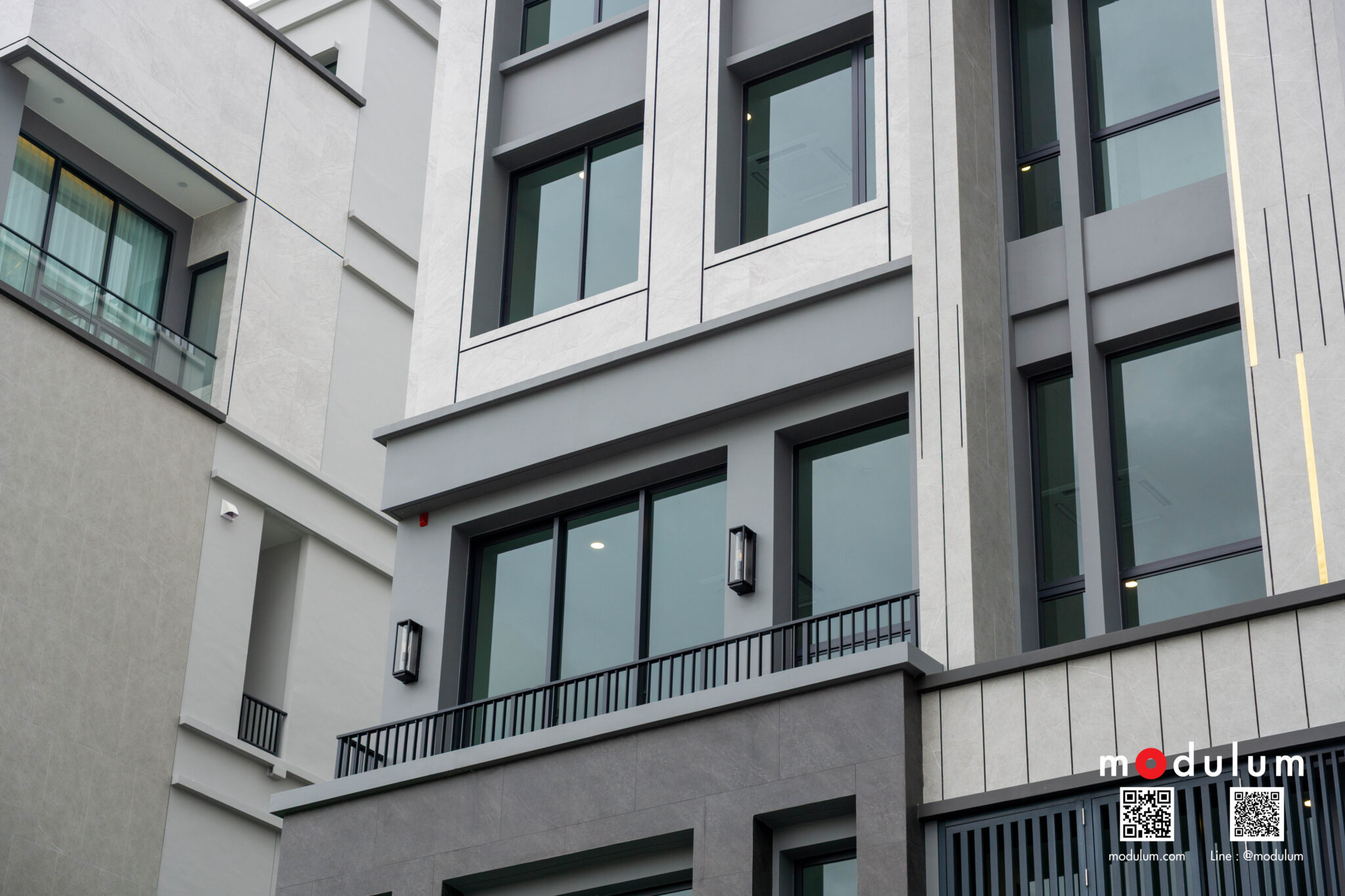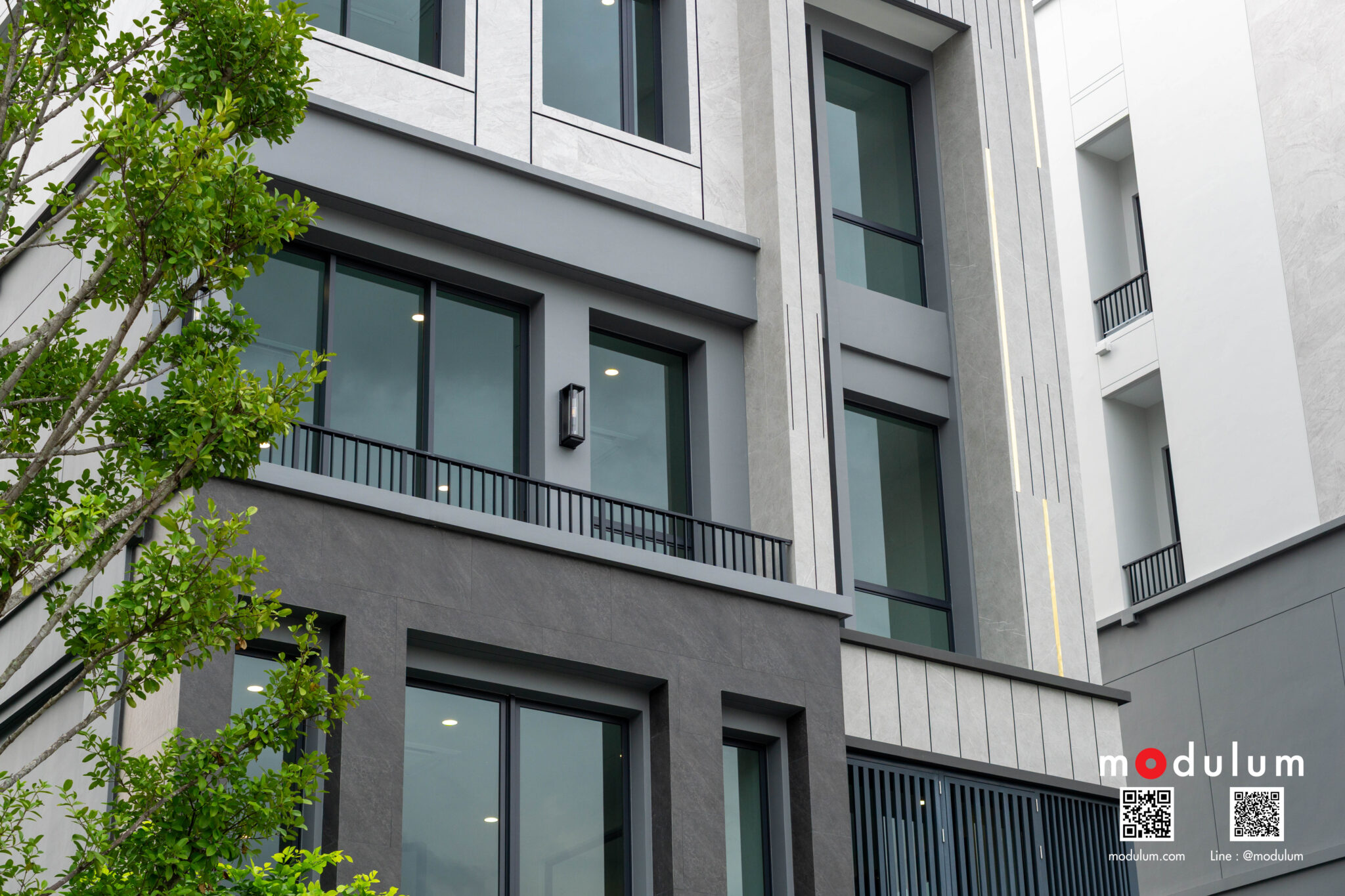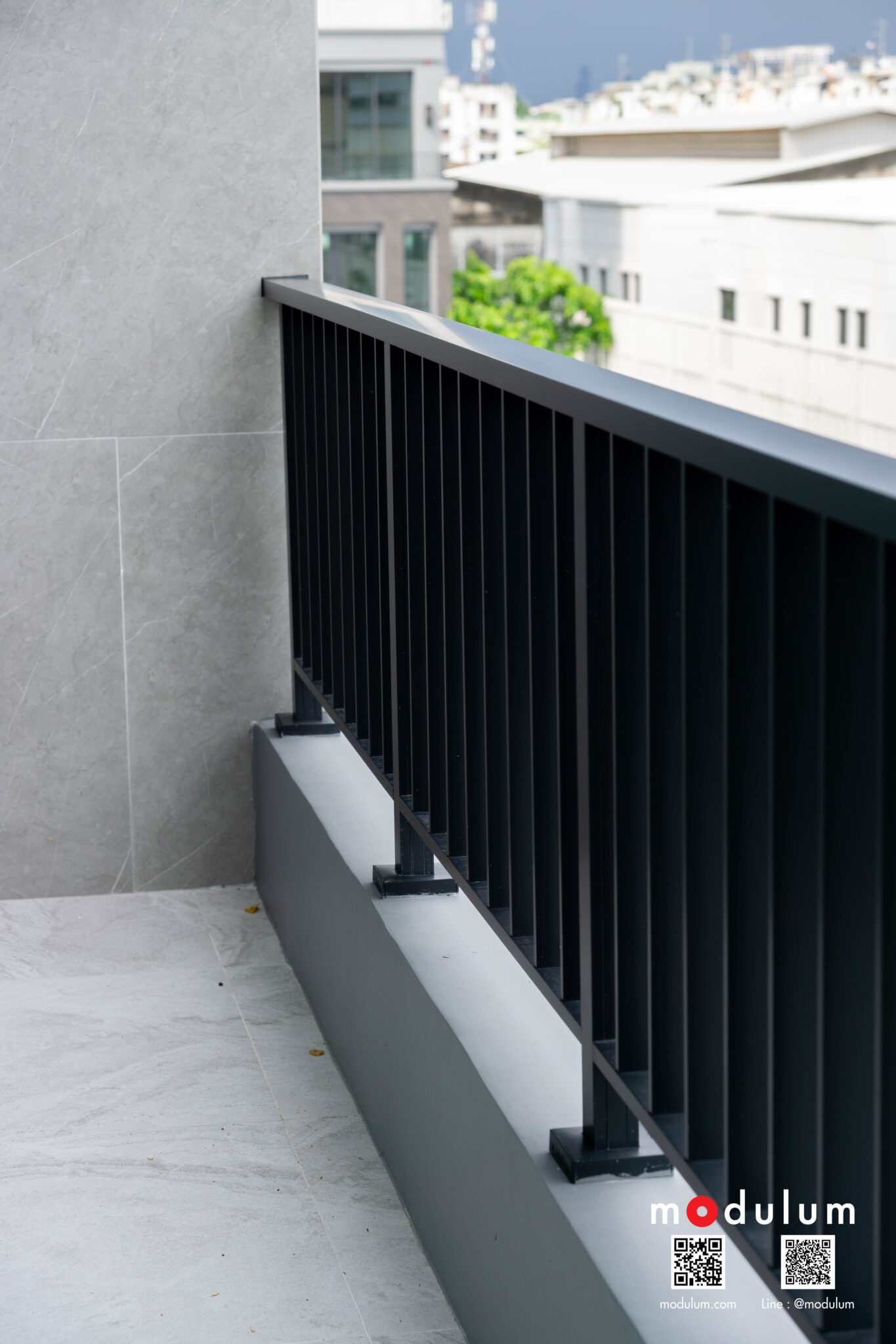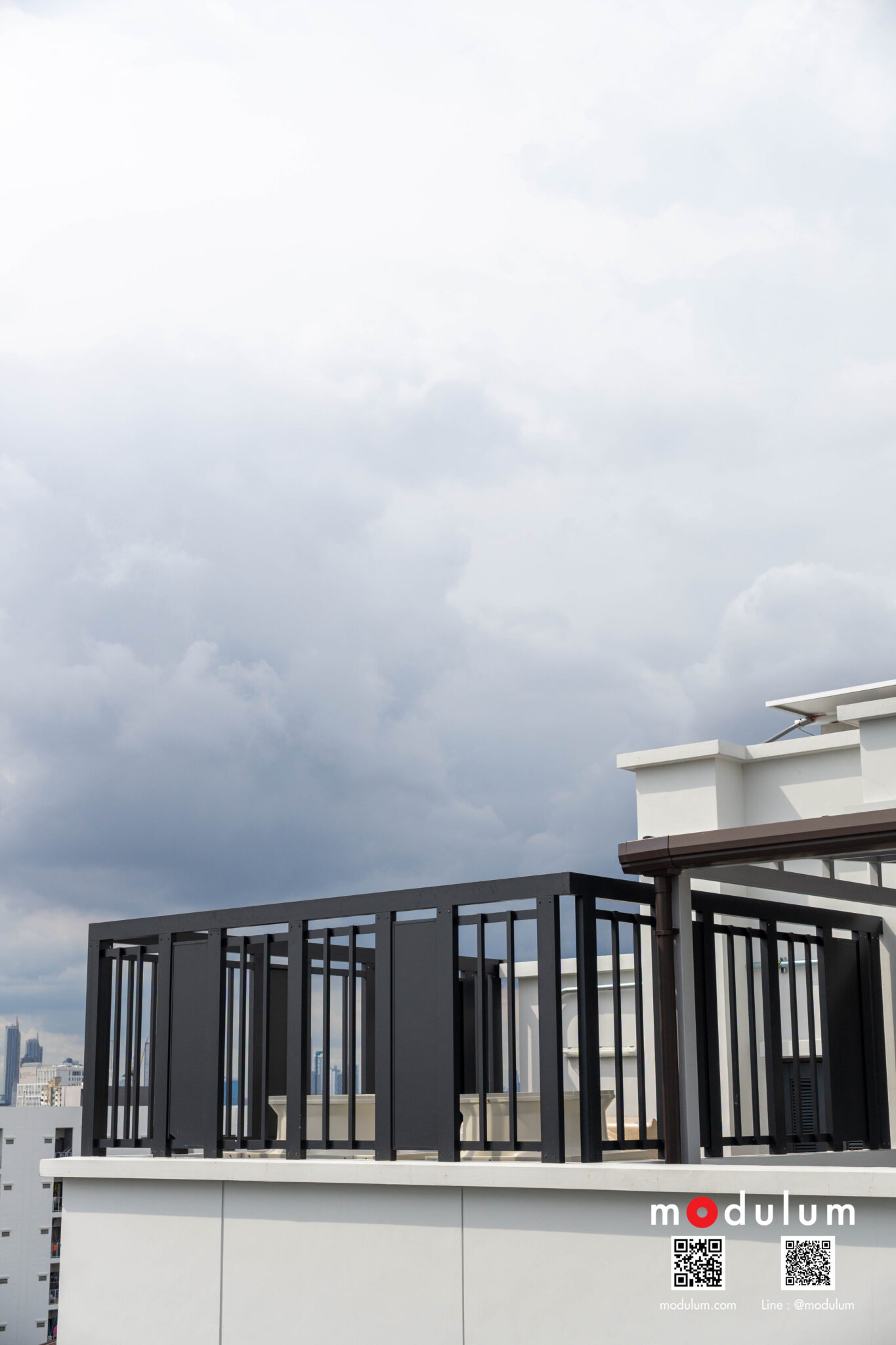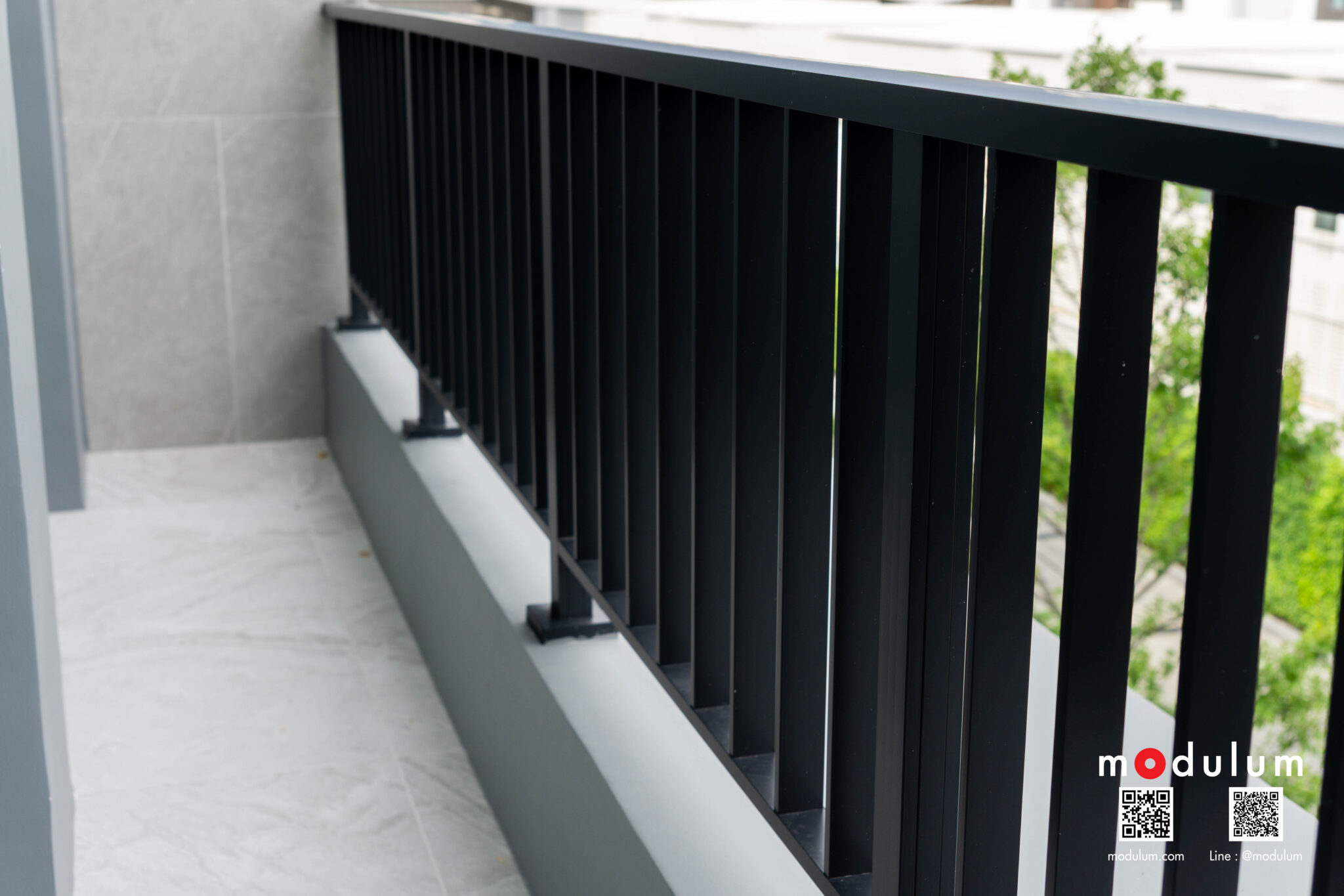ระแนง บังตา อลูมิเนียม (Facade) จัดวางระแนงแบบแนวตั้งหรือแนวนอน สามารถเลือกขนาดระแนงอลูมิเนียมได้หลากหลาย ตั้งแต่ 2.5 x 2.5, 2.5 x 4.5 หรือ 4.5 x 4.5 ซ.ม. และสามารถเลือกช่องว่างระหว่างระแนงได้ตั้งแต่ 2.5, 5 หรือ 7.5 ซ.ม. ทำให้สามารถลดแสงแดดเข้าบ้านและเพิ่มความเป็นส่วนตัวให้แก่ผู้อยู่อาศัยระแนงของเราทำจากอลูมิเนียมทั้งชิ้นทำให้มีน้ำหนักเบา ไม่เป็นภาระต่อโครงสร้าง หมดกังวลเรื่องสนิม และมีความคงทนต่อทุกสภาวะแวดล้อม นอกจากนี้แผงระแนง บังตา ของ modulum ทำสีด้วยเทคโนโลยี Powder Coat จากโรงงานชั้นนำในประเทศไทย ทำให้ชิ้นงานมีสีเรียบเนียนไม่เป็นคลื่นและสามารถเลือกสีได้หลากหลายจากประสบการณ์ในธุรกิจอลูมิเนียมและราวกันตกมาอย่างยาวนาน ทำให้เราได้พัฒนาอลูมิเนียมโปรไฟล์ ลิขสิทธ์เฉพาะของบริษัท เพื่อเพิ่มความแข็งแรงให้แก่สินค้า ทำให้คุณมั่นใจได้ในความปลอดภัยและความแข็งแรง