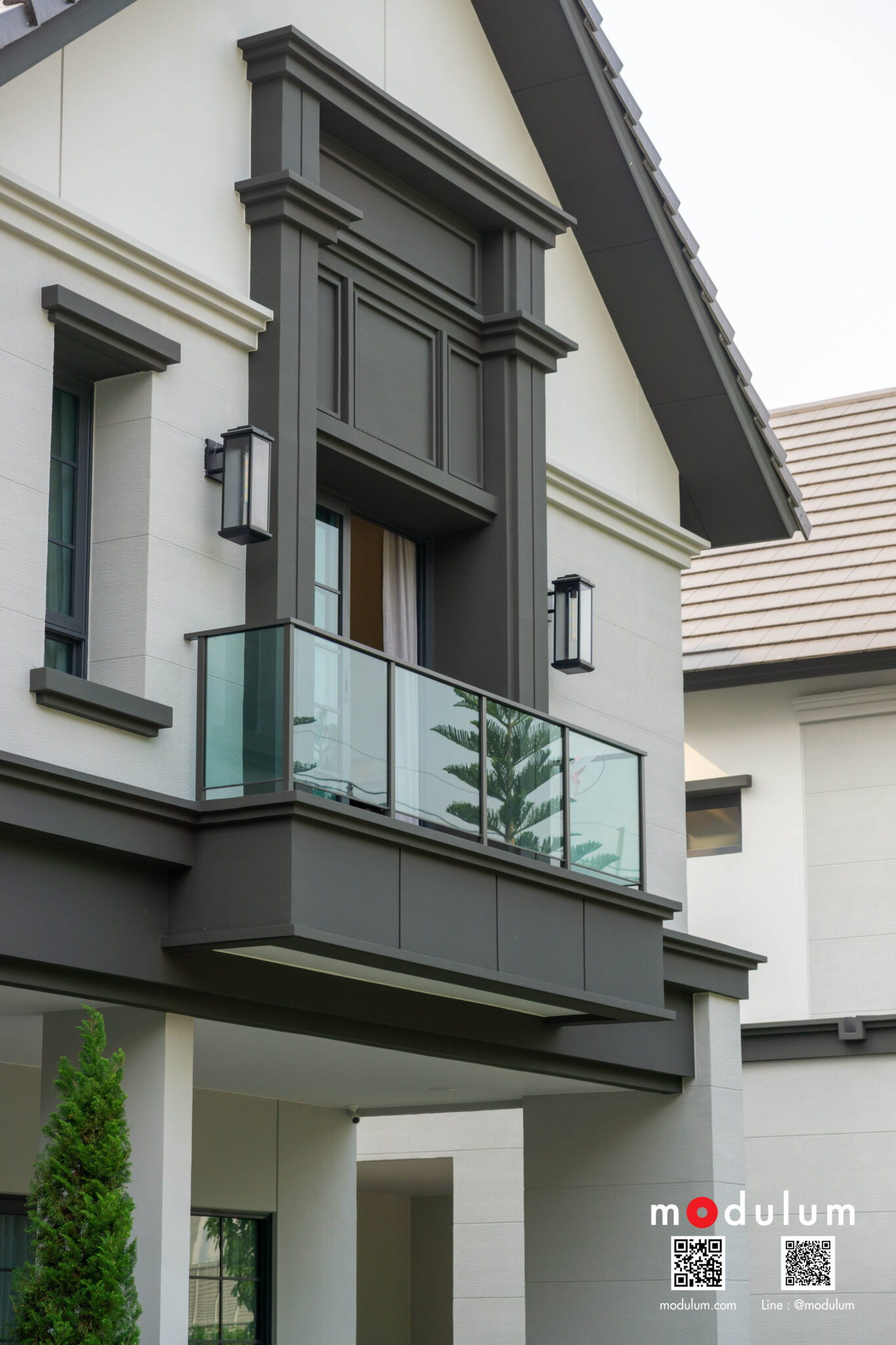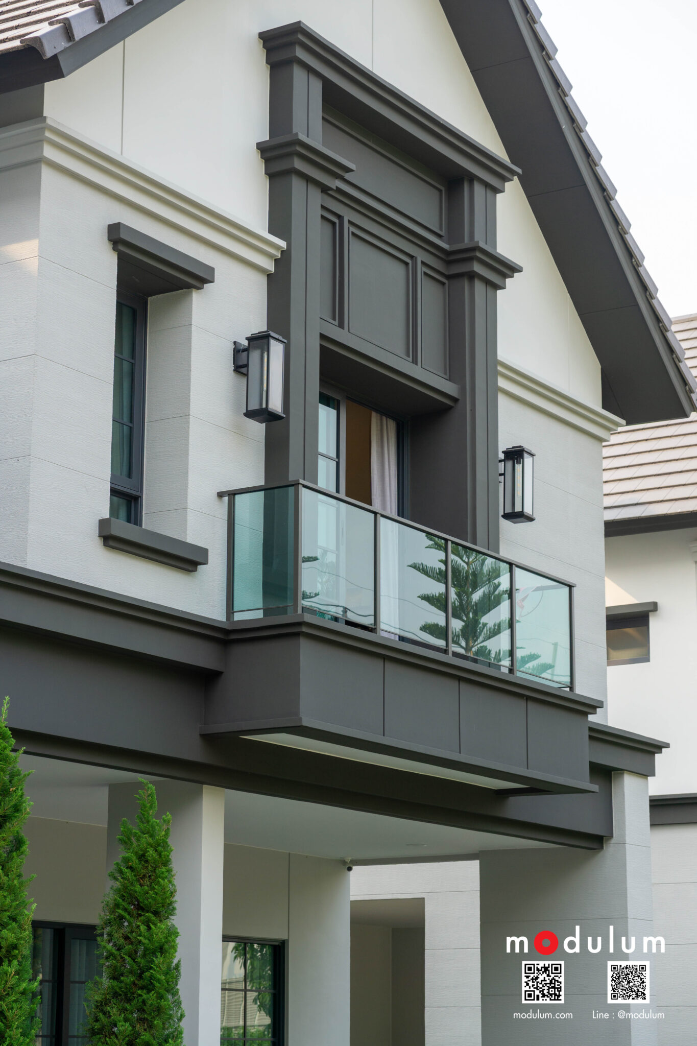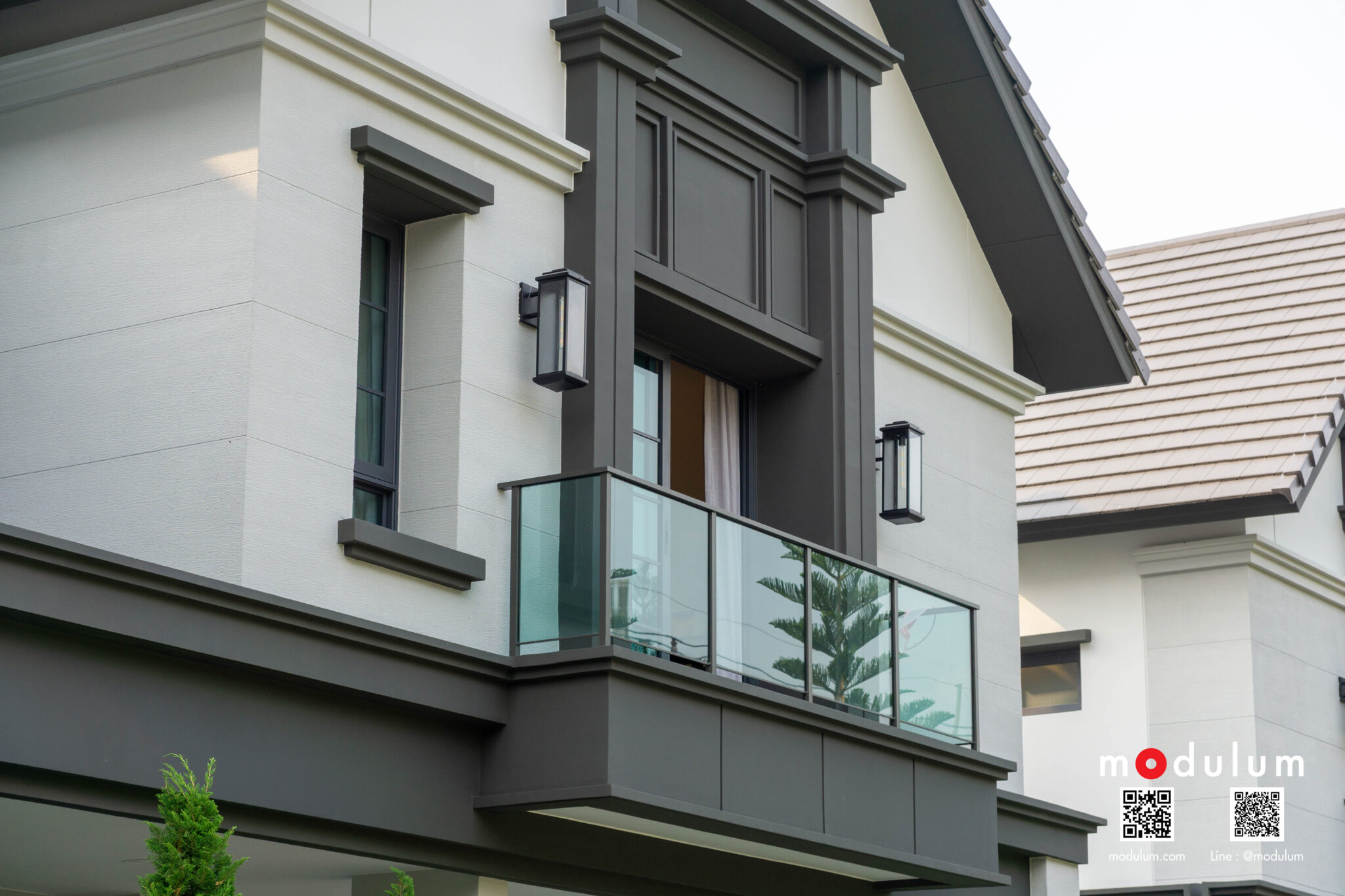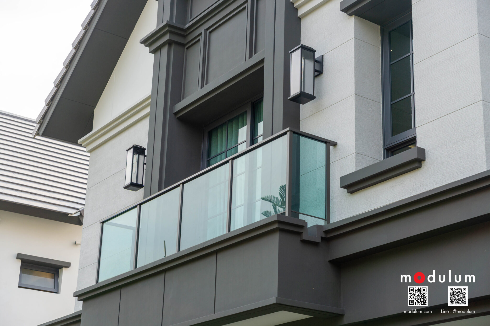 แผงบังตา facade ราวระเบียง ของโมดูลั่ม ทำจากอลูมิเนียม งานมีน้ำหนักเบา สวยงาม ไม่มีรอยเชื่อม หมดกังวลเรื่องสนิมและง่ายต่อการดูแลรักษา