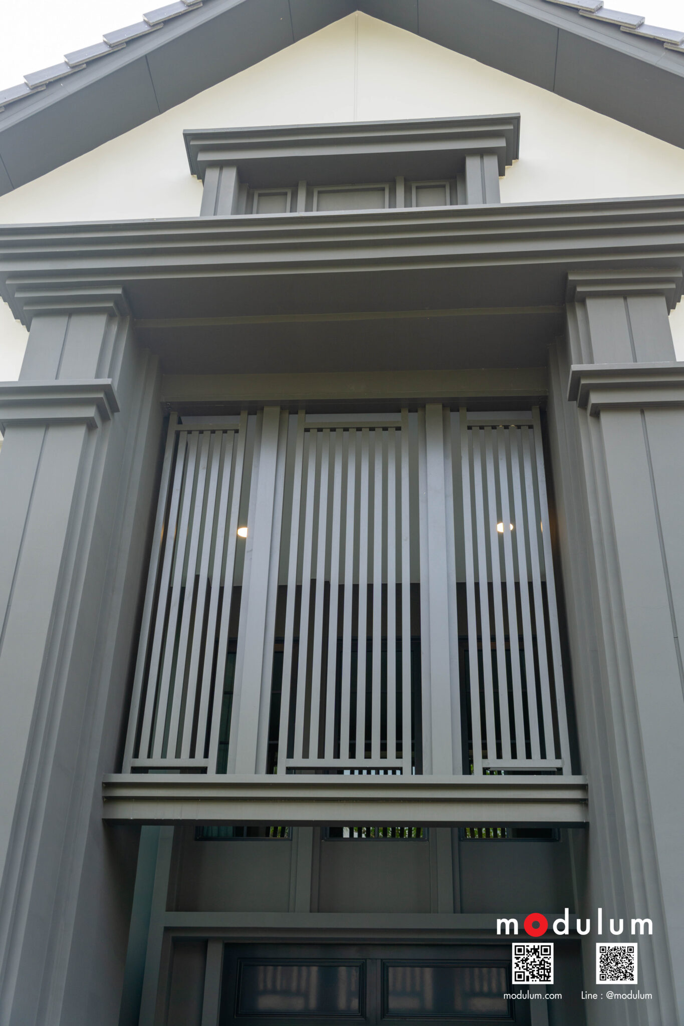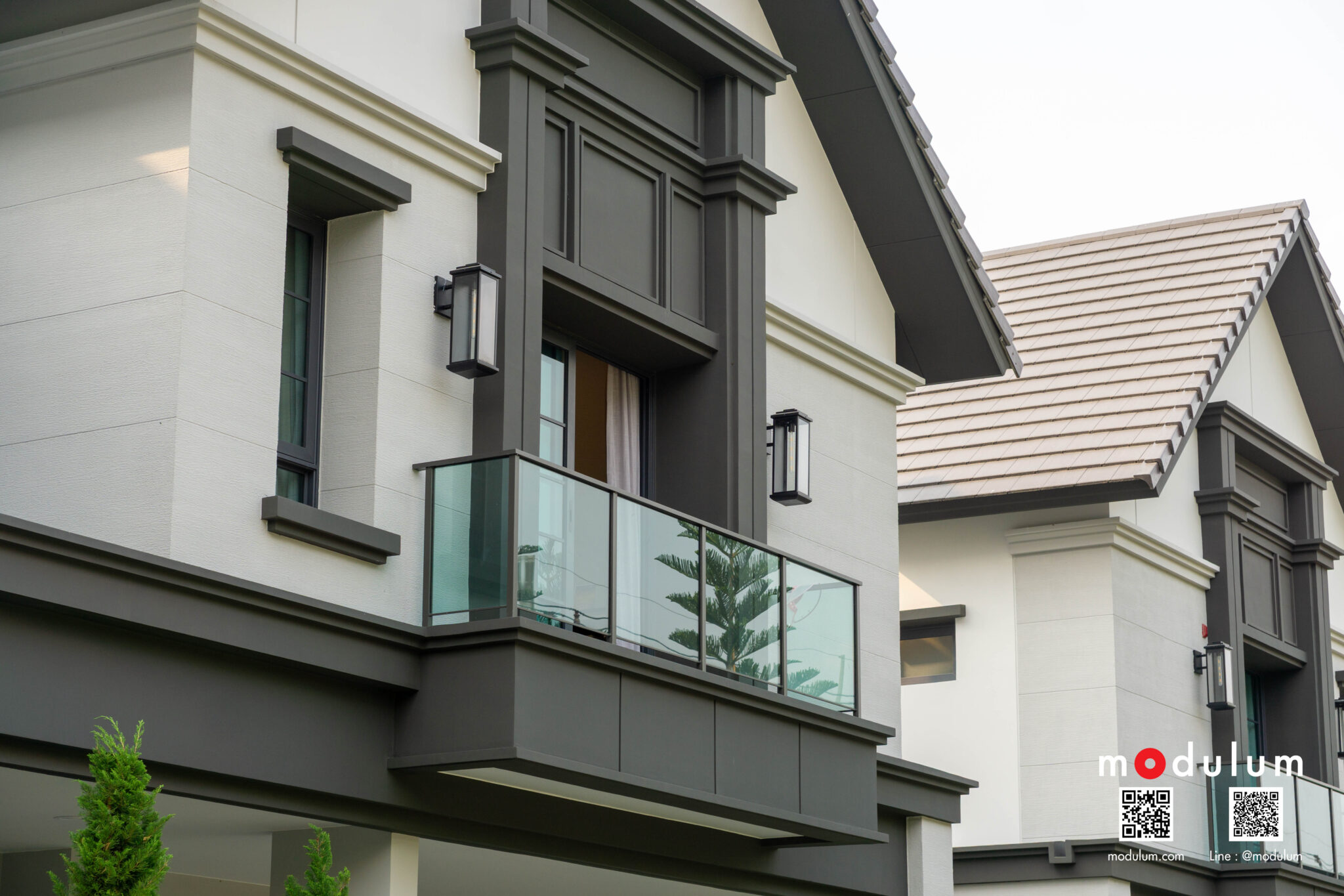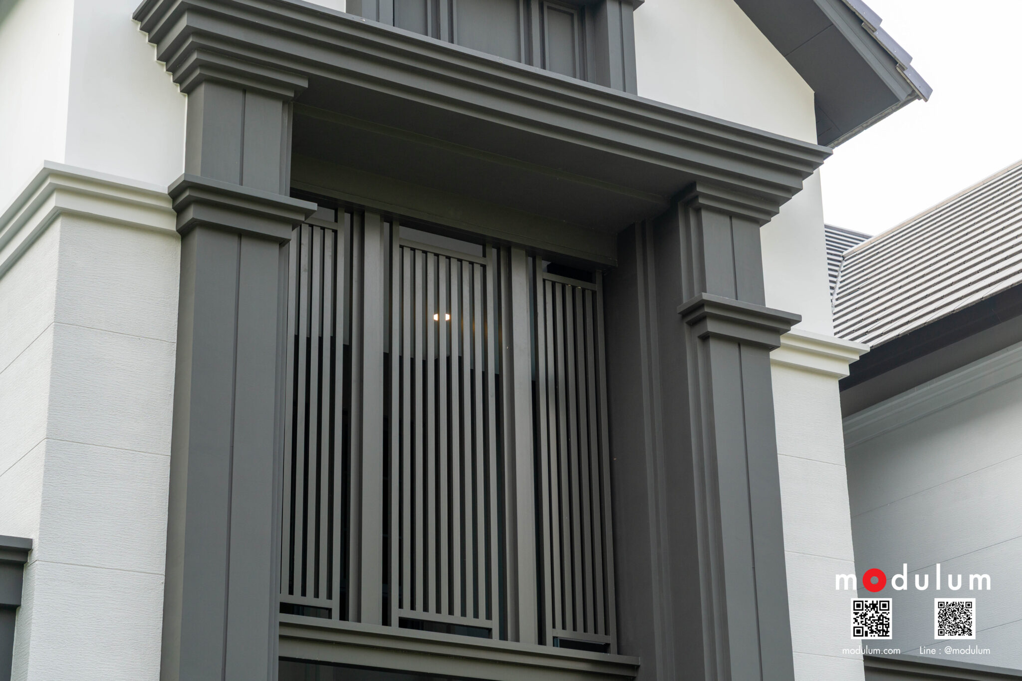 แผงบังตา facade ราวระเบียง ของโมดูลั่ม ทำจากอลูมิเนียม งานมีน้ำหนักเบา สวยงาม ไม่มีรอยเชื่อม หมดกังวลเรื่องสนิมและง่ายต่อการดูแลรักษา