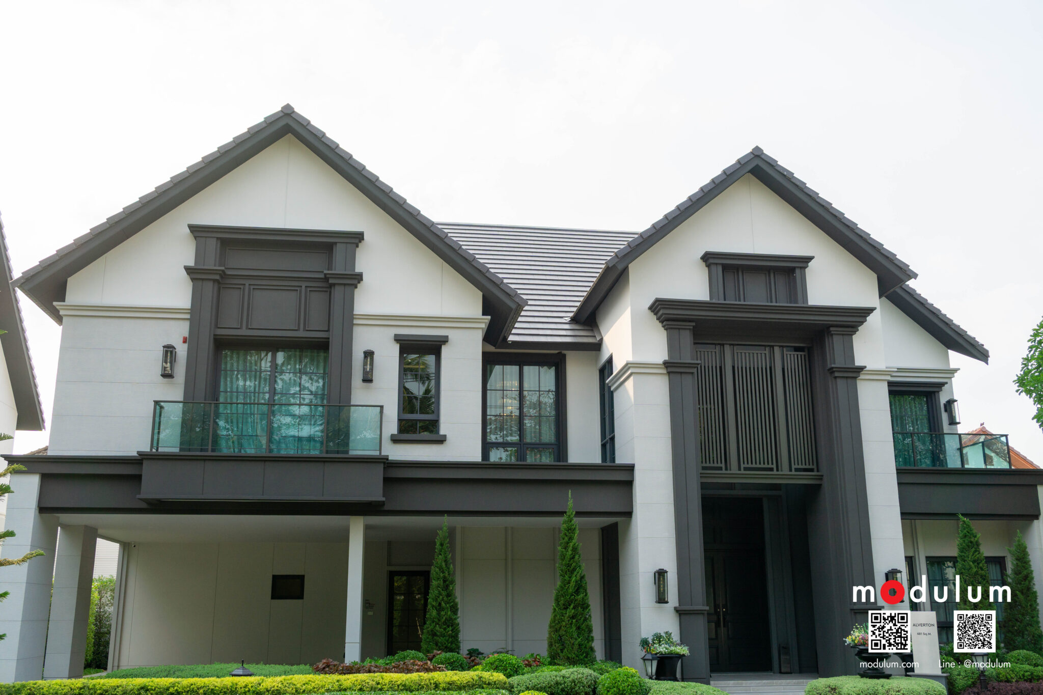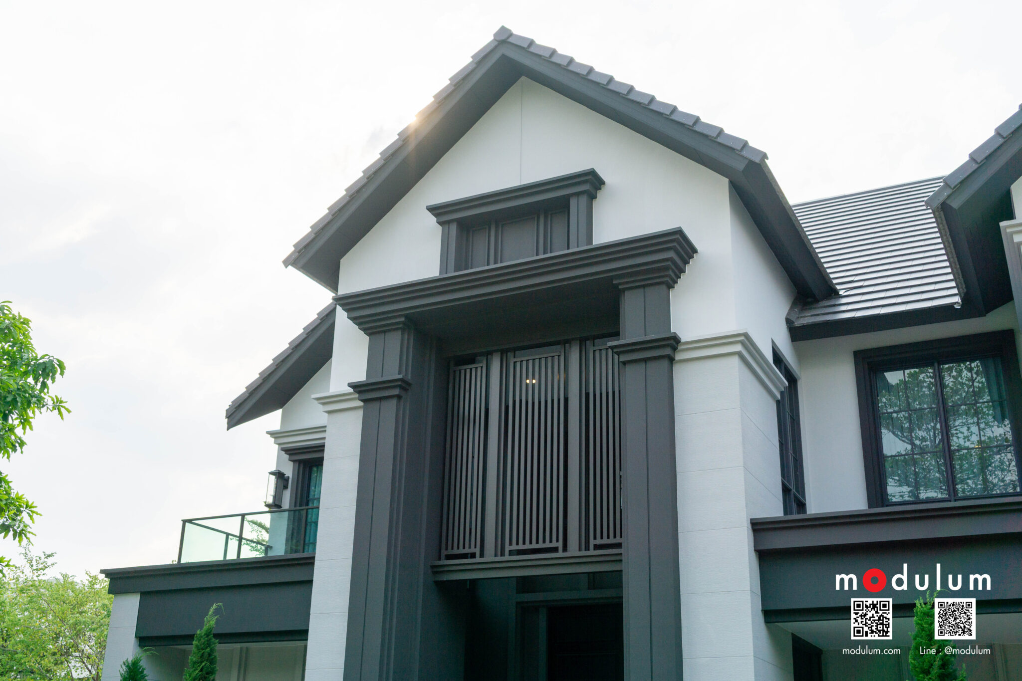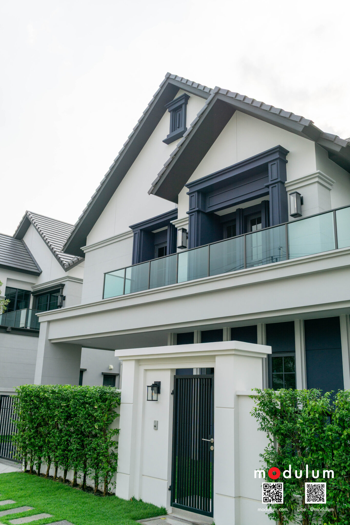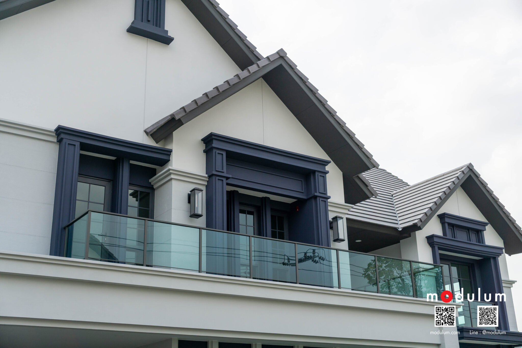 แผงบังตา facade ราวระเบียง ของโมดูลั่ม ทำจากอลูมิเนียม งานมีน้ำหนักเบา สวยงาม ไม่มีรอยเชื่อม หมดกังวลเรื่องสนิมและง่ายต่อการดูแลรักษา