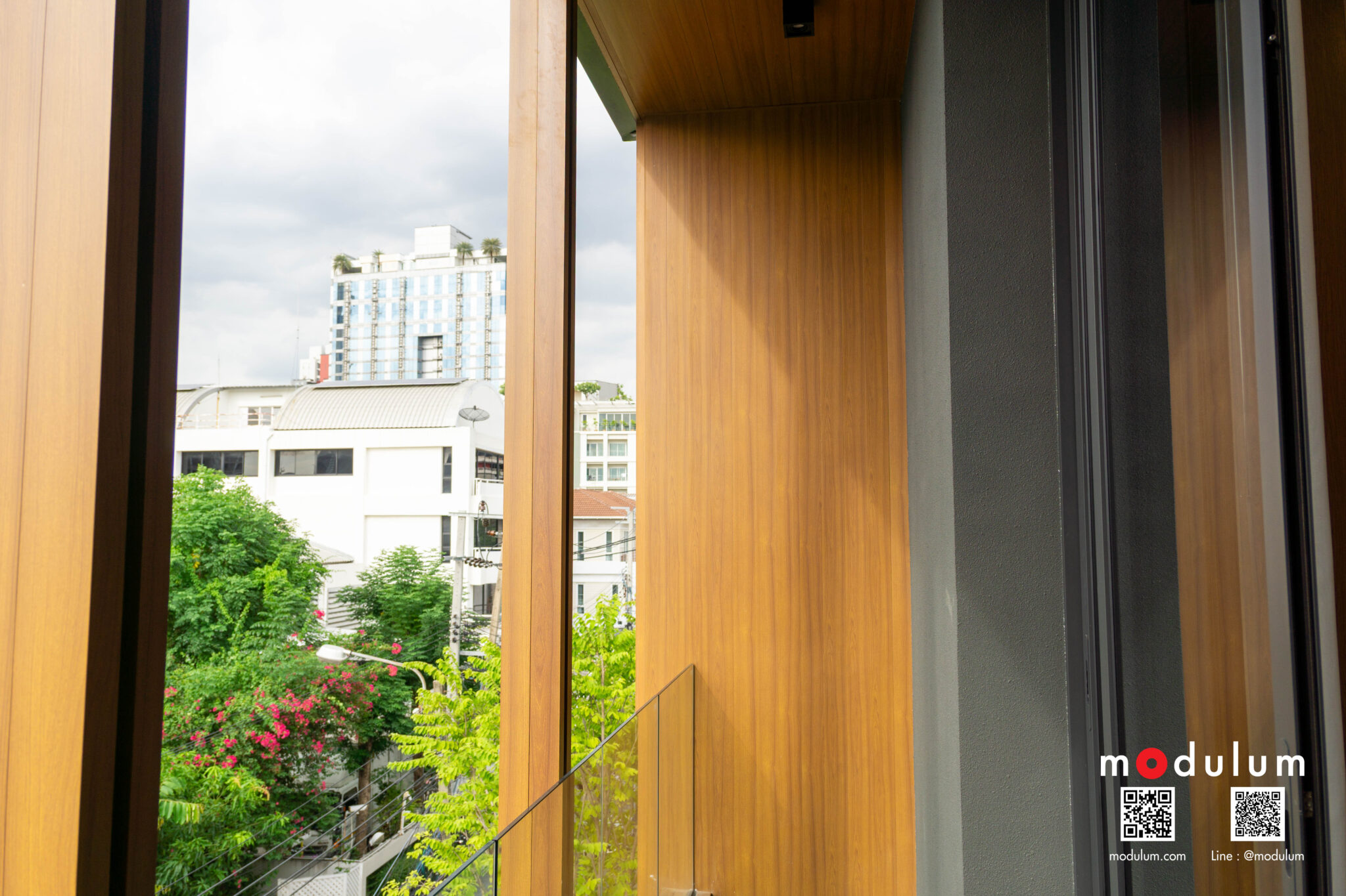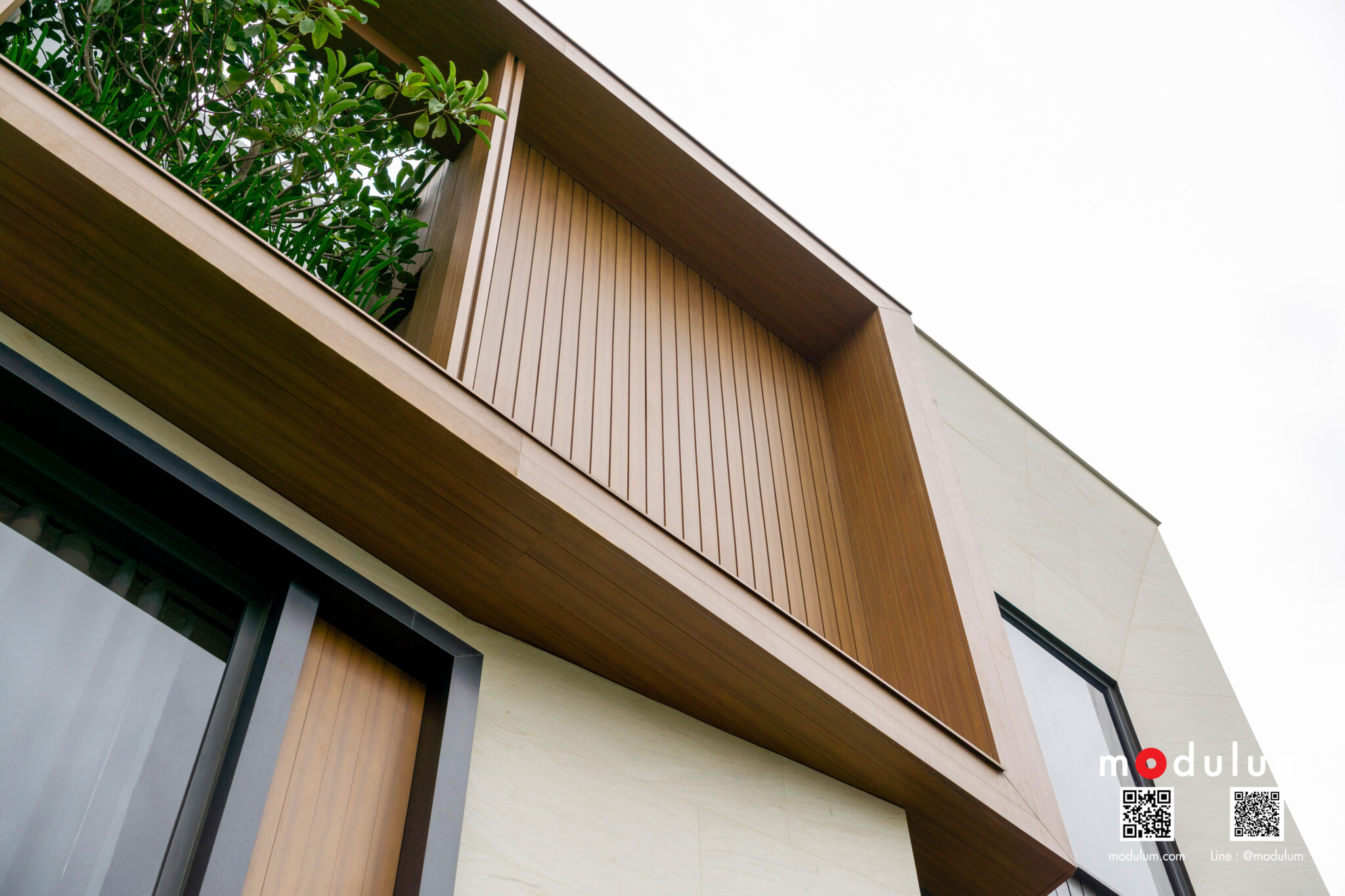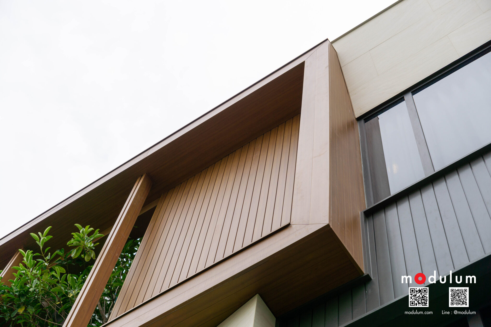ผนังกรุ ฝ้ากรุ อลูมิเนียมลายไม้ ของ modulum ทำให้บ้านดูโมเดิร์น มินิมอล เหมาะกับการออกแบบบ้านในปัจจุบัน โครงสร้างอลูมิเนียมทำให้สินค้าของเราไม่ขึ้นสนิมตลอดอายุใช้งาน