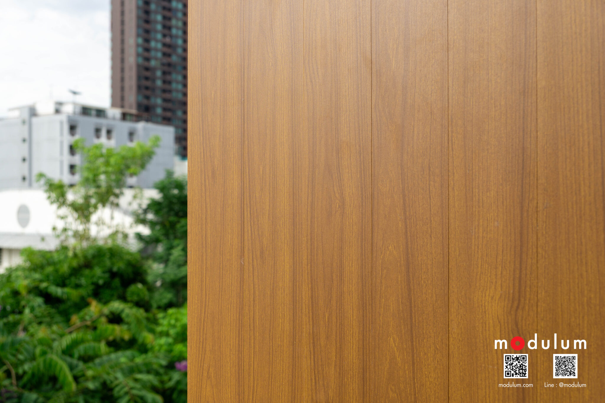 ผนังกรุ ฝ้ากรุ อลูมิเนียมลายไม้ ของ modulum ทำสีด้วยเทคโนโลยี Powder Coat จากโรงงานชั้นนำในประเทศไทย และหุ้มด้วยฟิล์มลายไม้ชนิดพิเศษด้วยกระบวนการสูญญากาศ ทำให้ฟิล์มลายไม้ของเราติดทนนานและไม่ซืดจางแม้เวลาจะผ่านไป